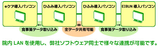 ■病院版 / 施設版 / 障害者施設版 / 複合版 がございます。 お求めやすい価格でのご提供を目指した栄養ケア・マネジメントソフトです。 各版にあわせた厚生労働省推奨様式の帳票エクセル出力を標準搭載しています。 →詳しくはこちらから |