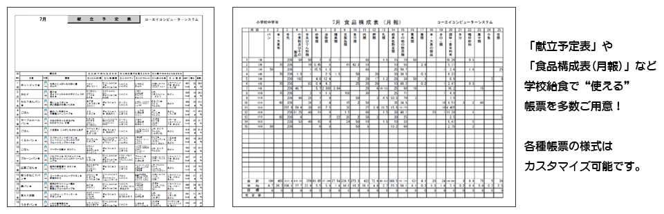 学校給食で“使える”帳票を多数ご用意!