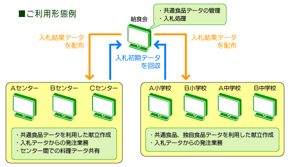 入札結果データは各センターや学校へ配信することができます。