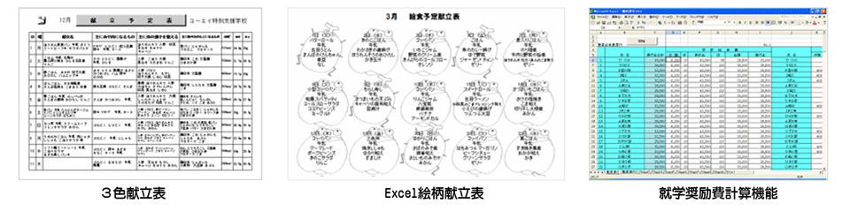 特別支援学校用給食ソフトシェアNo.1だからこその実用的な機能を多数搭載!